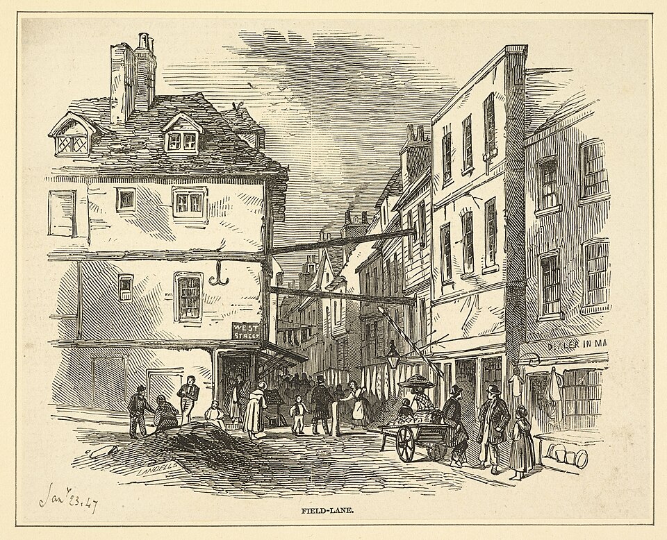 Engraving of Field Lane. 1847 (from the author's presentation copy of The Life of Dickens, 1872-74)