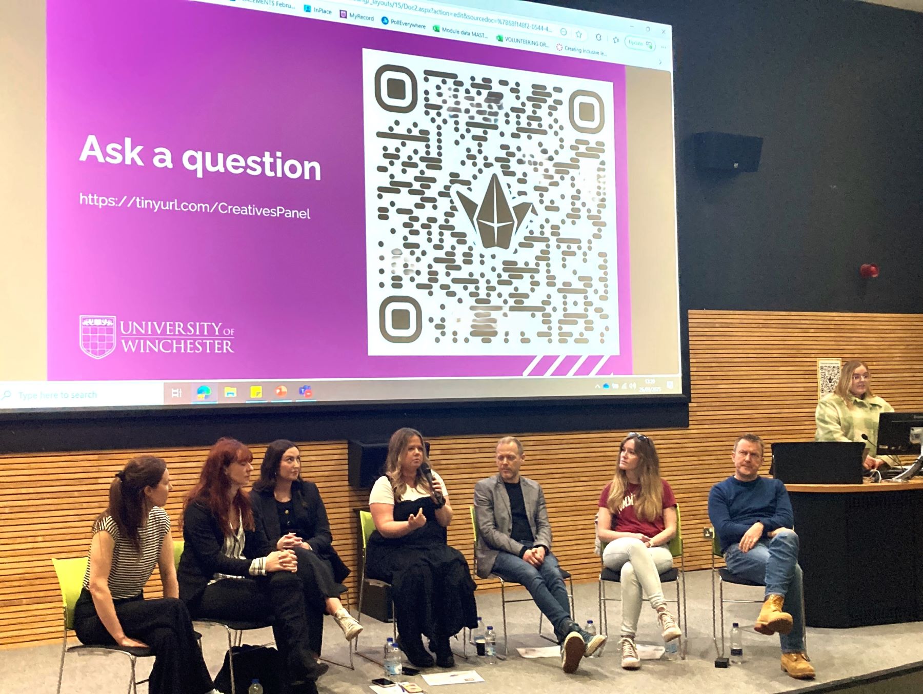 It is hoped the event, organised by the Careers and Opportunities Team, will become an annual one. In addition to the professional panel there was an exhibition area where students could network and find out about volunteering, placements and jobs from a range of organisations reflecting the creative courses at Winchester.