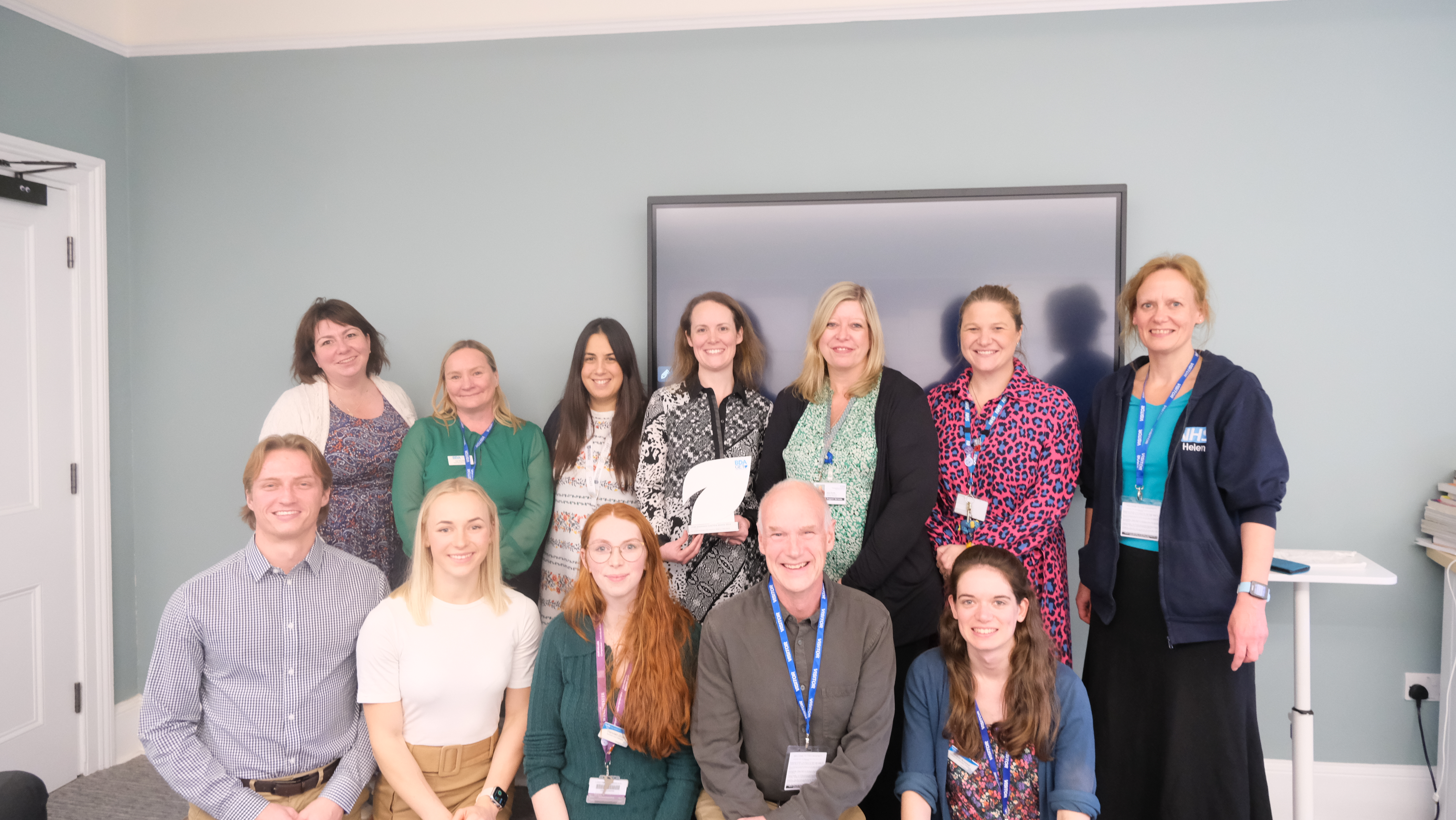 Pictured top: Student and hospital volunteers with the BDA award here. Pictured in back row Liz Stockley (second from left), Irantzu Arregui-Fresneda (third from left), Dr Emma Parsons (fourth from left), and Jane Davies, Patient Experience and Volunteer Manager at Hampshire Hospitals NHS Foundation Trust (third from right), and Sarah Fowler, Volunteer Coordinator at Hampshire Hospitals NHS Foundation Trust (second from right).