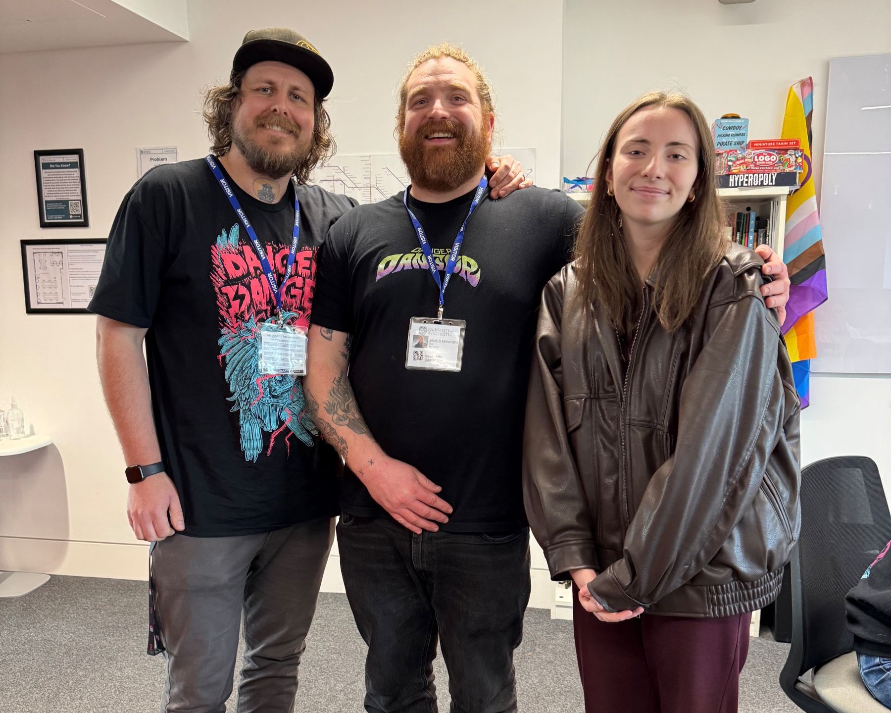 Pictured top: T-shirt design winner Sarah Deacon with founder Danger Danger Studio's founder Jon Folkard and lead designer James Mankiewicz.