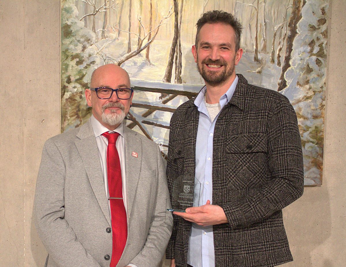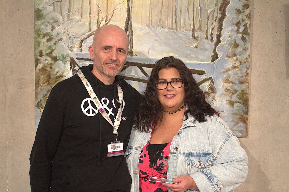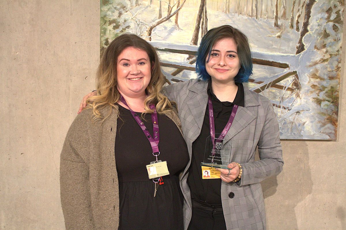 The event took place during Apprentice Week 2026 at the University’s West Downs Gallery against the backdrop of an exhibition featuring paintings by members of the Winchester Ukrainian Cultural Association (WUCA).