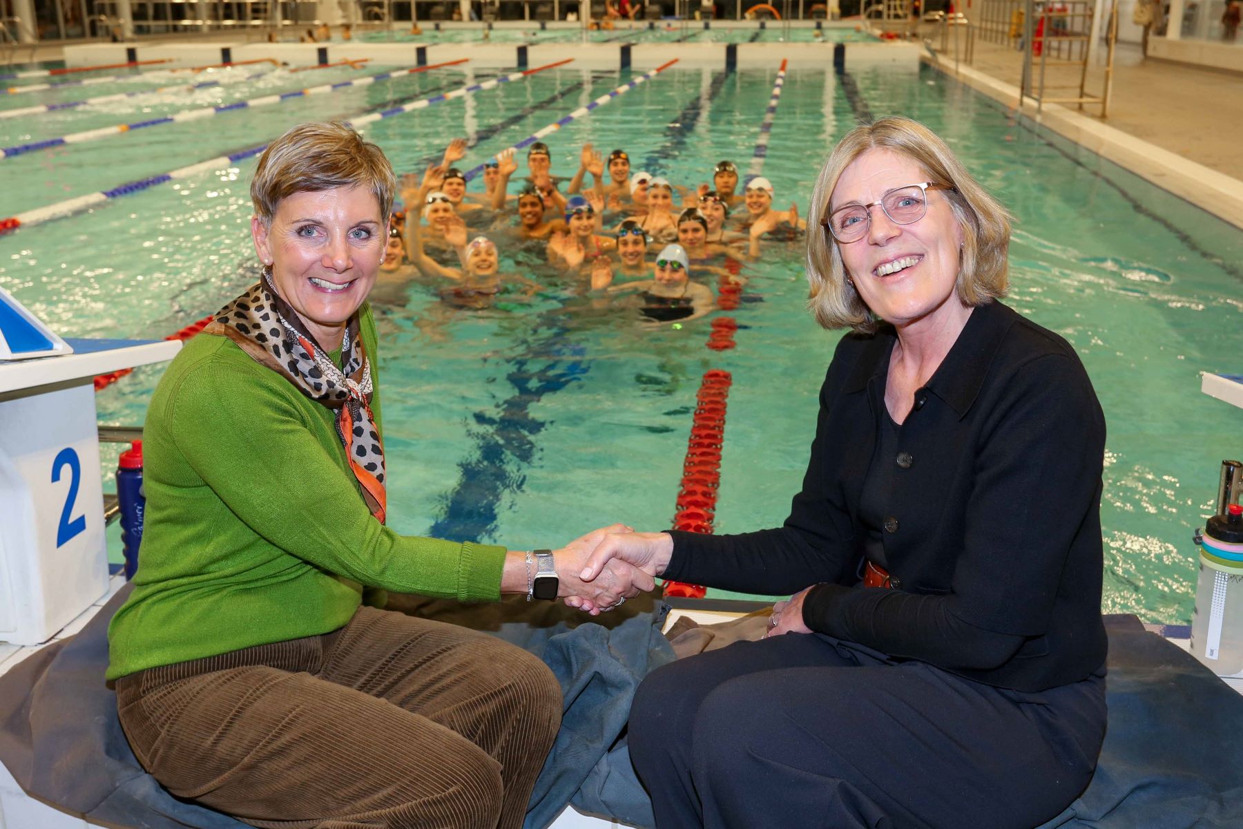 Pictured top: Liz Davies-Ward, Dean of the Faculty of Health and Wellbeing at the University of Winchester and Sue Falconer, Winchester City Swimming Club Chair of Board of Trustees shake hands on the new partnership