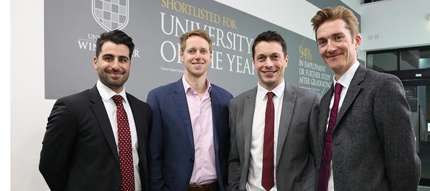Photograph above shows (left to right): Ariyan Alimadad; Louis Martinelli, Hobbs Rehabilitation; Dr James Faulker and Professor Simon Jobson, Dean-Designate of the Faculty of Health and Wellbeing for All Life at the University of Winchester.