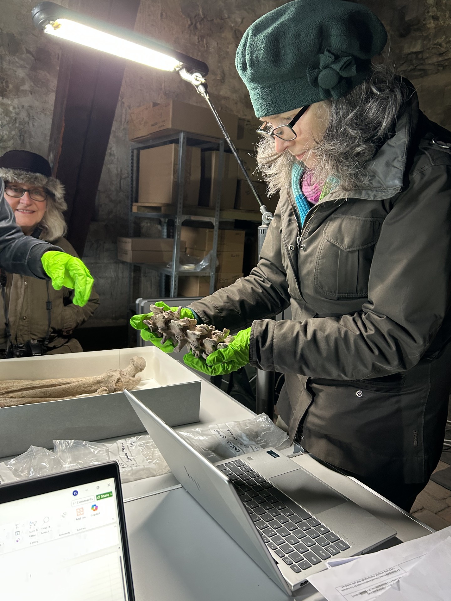 Dr Heidi Dawson-Hobbis, Senior Lecturer in Biological Anthropology at the University of Winchester, and Cathedral Curator Eleanor Swire have been carefully re-boxing the remains with a team of University students and graduates and cathedral volunteers.