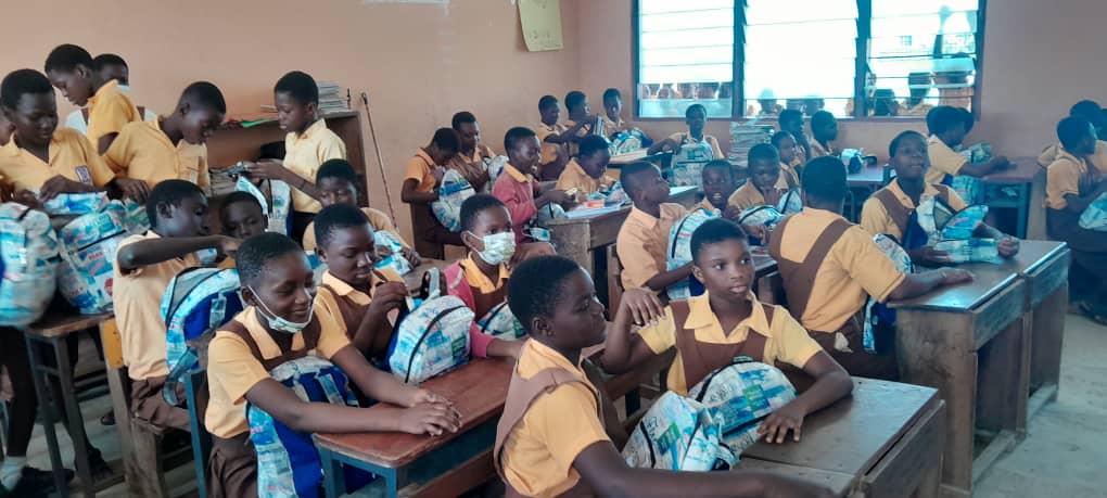 The Winchester group delivered 50 of these bags to nearby Abelemkpe 2 Basic School.