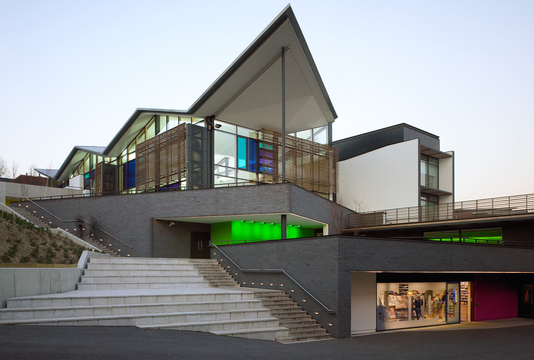 The contemporary design by award-winning Winchester-based architects Design Engine includes a 250-seat auditorium, art gallery, café, food hall, library, social learning areas and teaching spaces. Find out more.